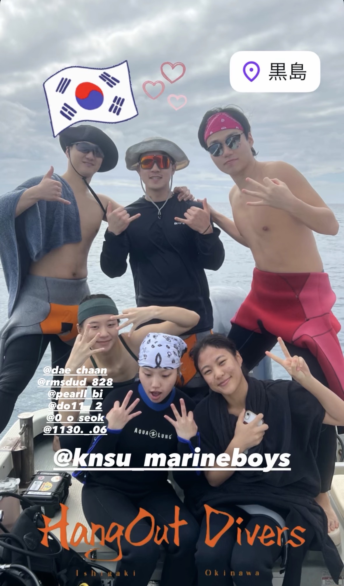 HangOut Divers 다이버 분들의 아지트와 같은 @hangout_divers에서 만난 모든 분들이 함께 다이빙을 즐길 수 있는 다이빙 숍을 목표로 하고 있습니다. 다이빙, 만남, 이치고이치에(いちごいちえ, 사람의 만남을 소중히 하라라는 일본 속담) 를 소중하게 생각하는 마음을 담아 매 다이빙 투어를 소규모인원수로 운영하고 있습니다.